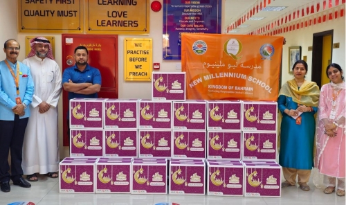 New Millennium School-Bahrain undertook a charity drive by donating boxes of essential grocery items to the Al Eslah Society (KAAF), a non-governmental organization interested in social, welfare, and charitable activities around the Kingdom, during the holy month of Ramadan.