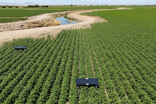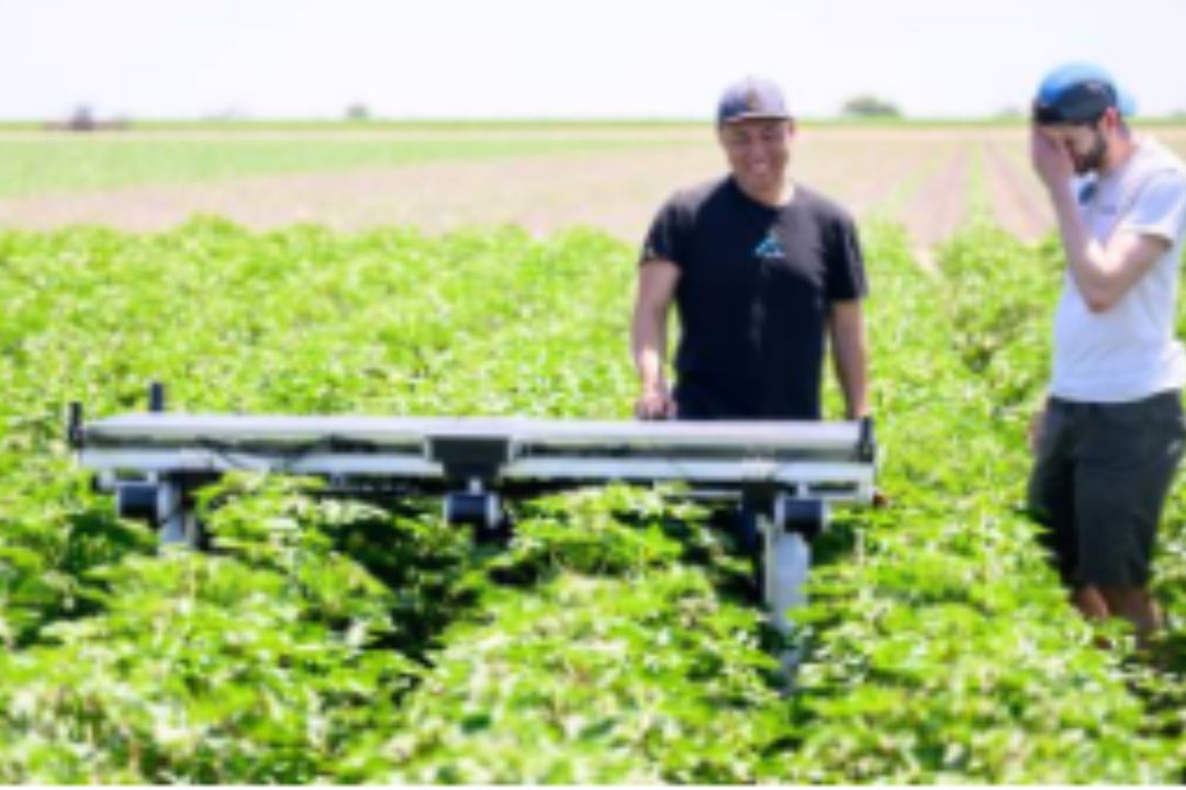 Oblivious to the punishing midday heat, a wheeled robot powered by the sun and infused with artificial intelligence carefully combs a cotton field in California, plucking out weeds.