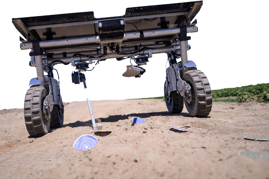 The robot’s AI system takes in data from on-board cameras, allowing it to follow crop rows and identify weeds.