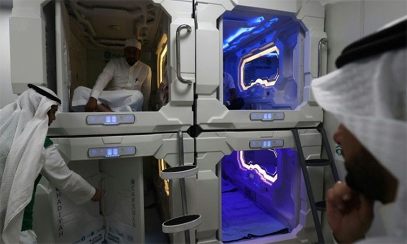 The kingdom tests Japan-inspired capsule hotels for hajj as the pilgrimage begins.