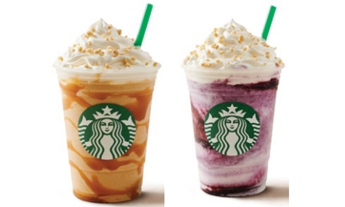 Blueberry Cheesecake Frappuccino: Blueberry puree is swirled into a cheesecake mix, then topped with whipped cream and finished with a topping of crunchy biscuit crumble. Caramel Cheesecake Frappuccino: Rich caramel is blending with coffee cheesecake mix, then topped with whipped cream and finished with a topping of crunchy biscuit crumble.