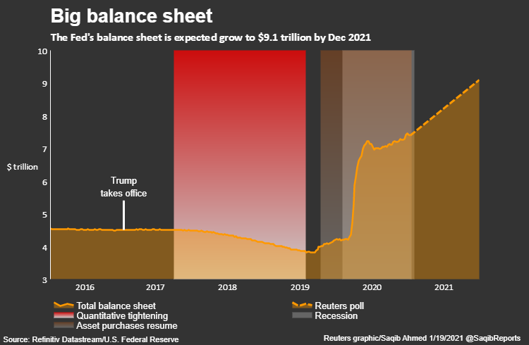Biden will inherit a Federal Reserve balance sheet that is bigger than ever, thanks to ramped-up spending in the wake of the pandemic.