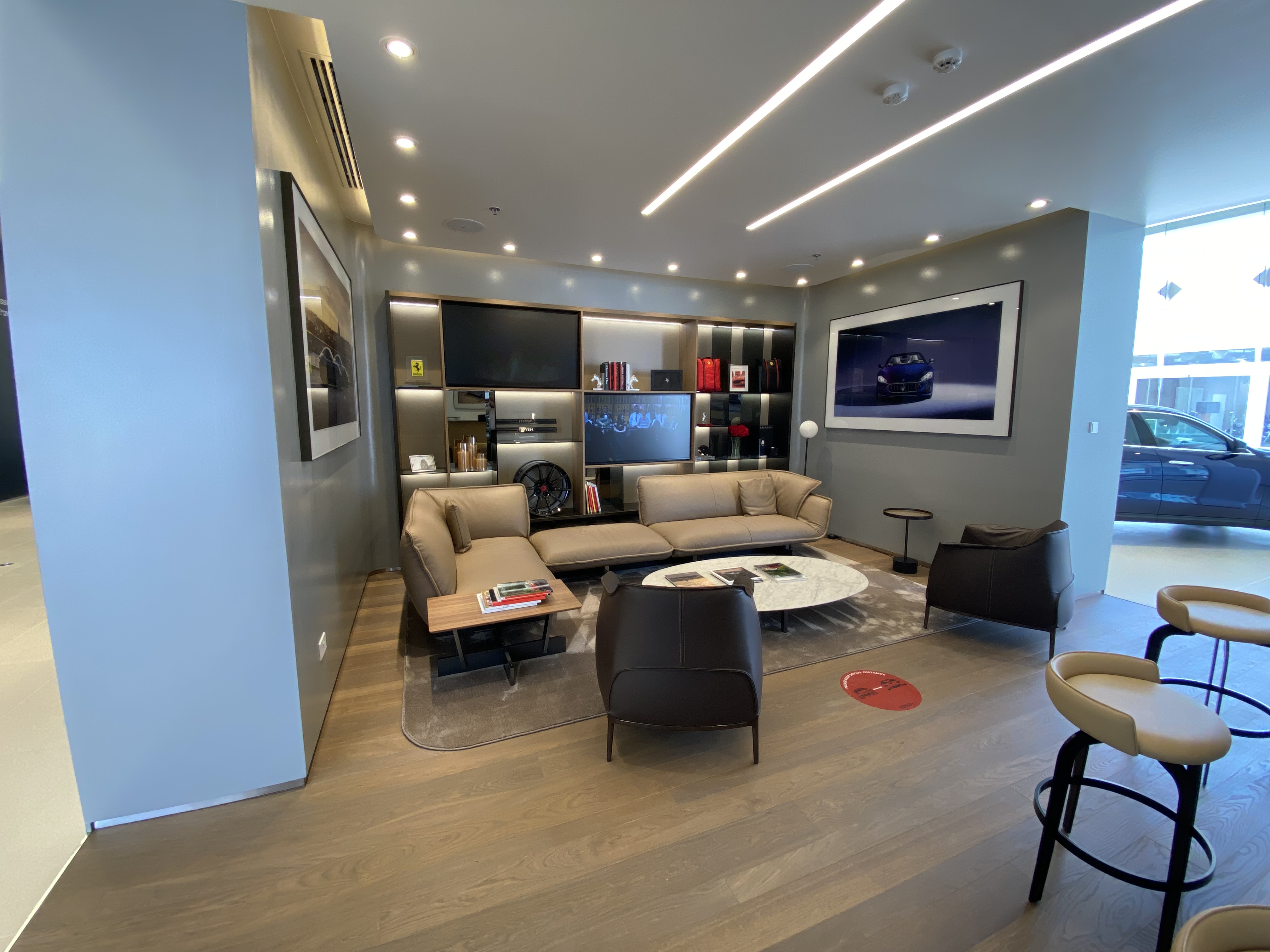 This spacious area is the ideal meeting place for Ferraristi in Bahrain to experience a warm community feel and share their passion for the Prancing Horse. Guests can take inspiration from the new heritage wall running throughout the showroom which features an array of classic Ferraris, while connecting to the present with a full TV wall projecting the latest Ferrari material, models, and events including the Formula 1 races.