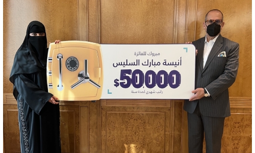 The prize was worth US$600,000, corresponding to a monthly salary of US$50,000 for a full year. A private ceremony was held in the end of December to hand over the largest salary prize in Bahrain to its lucky winner in the presence of several bank executives including Hassan Jarrar, Chief Executive Officer of BisB, Ali AlAradi, Acting Head of Retail Banking, in addition to several staff members.