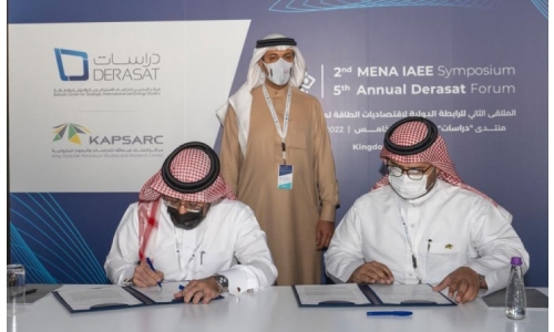The Bahrain Centre for Strategic, International and Energy Studies (Derasat) and the King Abdullah Petroleum Studies and Research Centre (KAPSARC), signed a memorandum of understanding yesterday for boosting cooperation in energy and climate change research.