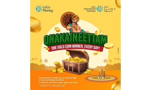 LuLu Exchange Bahrain, one of the most trusted remittance companies in the country, is launching the “Onakaineetam” promotion, which will select 10 lucky winners who will each receive gold coins of 8 grams, making their Onam extra auspicious.
