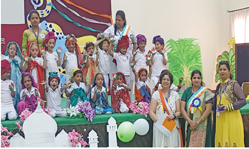 The colourful programme of the LKG students saw the lighting of the Amar Jyothi(Eternal Flame) and snippets from the Indian freedom movement.