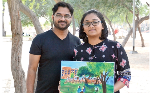 Art is a form of living. It is a skill that can be only mastered through continuous practice and determination. Painting is not only a hobby for me, but it gives me an opportunity to express myself on white canvas through magical touches of paintbrush soaked in vibrant colours. I can rejuvenate myself after an entire week’s workload and exhaustion by painting for merely two hours. Painting in the open air, under the mild winter sun is an unforgettable experience. The chirping of birds and the hustling of the leaves calms the body and soul, allowing to devote oneself only towards painting. Sketching the landscape as it unfolds itself in front of your eyes is truly a magnificent experience for artists. ‘Nature study’ has only been introduced to us through the solitary effort of our drawing instructor Santhosh Poruvazhy. Finding the ideal landscape in a desert like Bahrain, just to familiarise his students to nature study, is a task that could only be accomplished by the determined and dedicated artist. It is an experience that cannot be penned down on a piece of paper, but I shall forever cherish it in my heart as a glorious memory of my childhood.