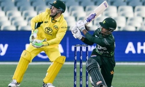 Openers Ayub and Shafique started the chase slowly, pinned down by Josh Hazlewood and Pat Cummins, with just 47 coming from the first 10 overs. But they began swinging the bat after that with Ayub smacking a big six from Cummins then crunching another off Mitchell Starc.