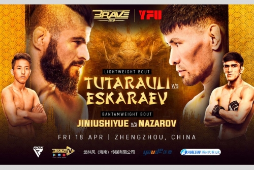 Now, as he returns to China for another showdown, Eskaraev looks to solidify his case for a title fight against Abdisalam. In the co-main event, Chinese superstar Jiniushiyue will take on Tajikistani wrestling phenom Khurshed Nazarov. Nazarov, who suffered his first career loss against current BRAVE CF Bantamweight champion Nicholas Hwende, is determined to bounce back and make his mark in the Bantamweight division. Jiniushiyue shares a similar motivation, as he looks to end a two-fight winless streak that followed an impressive seven-fight winning run spanning two years.