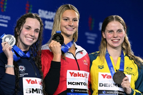 The 18-year-old McIntosh, the 200m butterfly Olympic champion, has already won the 400m freestyle and 200m individual medley in Singapore.