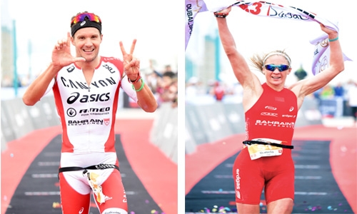 Jan Frodeno and Daniela Ryf of the Bahrain Endurance Elite 13 team won the male and female categories at Ironman 70.3 Dubai in the first leg of the Nasser Bin Hamad Triple Crown series on Friday and the chance of winning a U$1 million if they win the second leg in Austria and the third in Bahrain late in the year.