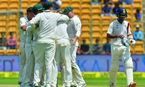Bangalore : Australian off-spinner Nathan Lyon claimed eight wickets to help bowl out India for 189 on the opening day of the second Test in Bangalore on Saturday.