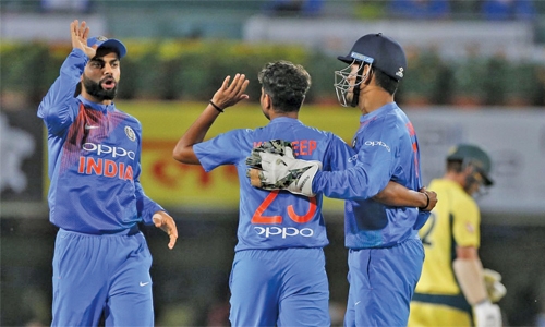 Ranchi : Skipper Virat Kohli played a sweet cameo after yet another impressive show by the bowling unit as India comfortably beat Australia by nine wickets in a rain-curtailed opening T20 International, here on Saturday.