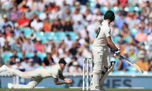 But when Ben Stokes dived to his left at leg slip to catch Smith off paceman Stuart Broad, England knew they had removed the last serious obstacle in their victory charge. It was the first time that Smith, who has scored an astonishing 774 runs in seven innings, had been out for a score of less than fifty during this series. The Oval crowd gave him a standing ovation as he walked back to the dressing room in the September sunshine, with Australia in deep trouble at 85-4 in the post-lunch session.