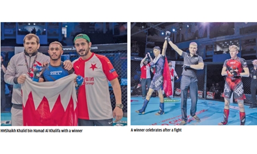 Throughout the day, HH Shaikh Khalid bin Hamad Al Khalifa proved once again his commitment to the sport of MMA, and its development in the Kingdom of Bahrain by cornering fighters and giving them advice during their bouts and in-between rounds as well. Shaikh Khaled was an energetic presence for the athletes, who welcomed the chance of listening and taking in his advices.