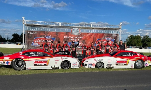 Bahrain International Circuit (BIC) CEO Shaikh Salman bin Isa Al Khalifa congratulated His Majesty the King’s Personal Representative His Highness Shaikh Abdullah bin Hamad Al Khalifa and Bahrain1 Racing team for their one-two at Lucas Oil Raceway in Indianapolis, part of the 2021 NHRA Pro Mod Series in the US.