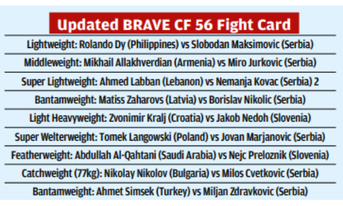 Allakhverdian steps in for Hanekom, faces Jurkovic in co-main event of BRAVE CF 56
