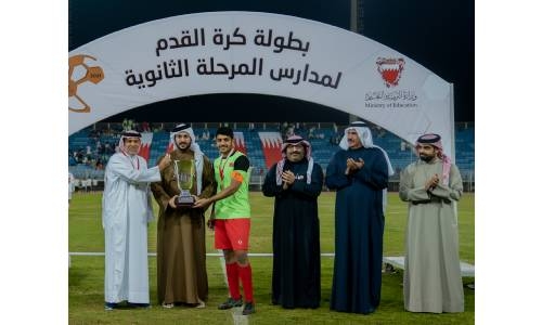 HH Shaikh Nasser bin Hamad Al Khalifa, Representative of HM the King for Humanitarian Works and Youth Affairs have deputised HH Shaikh Khalid bin Hamad Al Khalifa, First Deputy President of the Supreme Council for Youth and Sports, President of the General Sports Authority, and President of Bahrain Olympic Committee to attend the final game of the championship which was organised by the Ministry of Education in cooperation with the Supreme Council for Youth and Sports, the General Sports Authority and the Bahrain Football Association.
