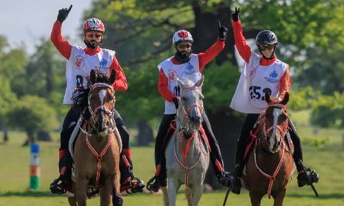 His Highness’ teammate Abdulrahman Al Zayed finished third, while Maria of Portugal came second as fourth place went to Saif Al Mazrouei of the UAE. Meanwhile, Bahrain’s Mohammed Al Hashemi has won first place in the 120km race, followed by his teammates Shahad Waleed Al Ahmad and Nasser Al Qahtani as Bahrain swept the podium of this contest.