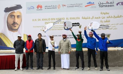 BREEF President HH Shaikh Isa bin Abdullah Al Khalifa awarded the winners after the event, which featured wide participation. Yusuf Saleh of Al Asayel Stable came second, while third place went to Ahmed Al Fateh Stable’s Mohammed Amy. Al Enzy won in four hours, 47 minutes and 50 seconds. Saleh followed in 4:48:10, while Amy clocked a mark of 4:48:11.