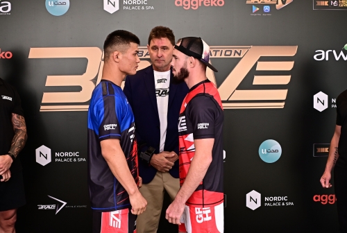 “I am happy to be here today and mark my words, I will do all I can to stop Nemat tomorrow night,” said Bogatov, who defends his 145-pound title for the first time tonight. “I will finish Roman at BRAVE CF 72, watch this space,” said a more stern-looking Abdrashitov, who has racked up seven KO/TKOs and 14 stoppages thus far.