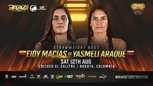 The women are taking the central stage at BRAVE CF 73, in Bogota. Promotional veteran Yasmeli Araque makes her comeback exactly four years later, once again Bogota, and takes on Ecuador’s Eidy Macías in a strawweight bout.