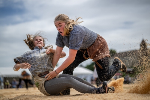 Schwingen pits two strapping wrestlers in baggy belted breeches against each other. To win, they must pin their opponent’s shoulder blades to the ground in the sawdust ring, with one keeping one hand gripped to the other wrestler’s shorts.