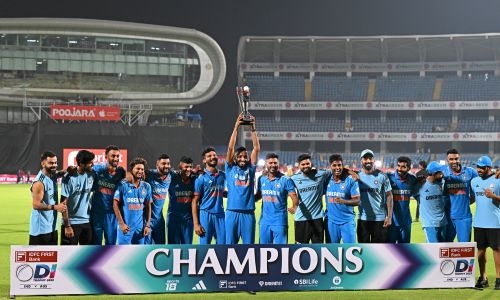 He then sent back Kohli soon after the former captain’s 66th ODI fifty and, despite a fighting 48 by Shreyas Iyer, the Indian batting folded in 49.4 overs.