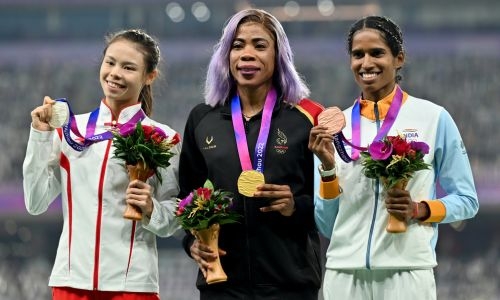 Kemi won the women’s 400 metres hurdles title and did it in style, setting a new Asiad record in the process. Her victory added to the gold medals she won in the women’s 400m and as part of Bahrain’s mixed 4x400m relay team.