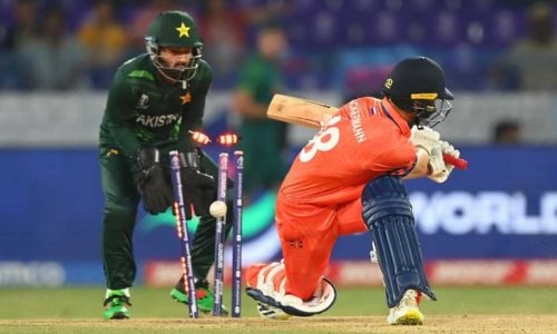 Spinner Ackermann then claimed the prized wicket of Azam for five before van Meekeren dismissed Imam-ul-Haq for 15 to leave Pakistan tottering at 38-3.