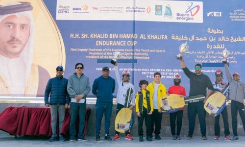The event was held in the presence and under the supervision of His Highness Shaikh Nasser bin Hamad Al Khalifa, Representative of His Majesty the King for Humanitarian Works and Youth Affairs and Honourary President of the Bahrain Royal Equestrian and Endurance Federation (BREEF), and under the patronage of His Highness Shaikh Khalid bin Hamad Al Khalifa, First Deputy Chairman of the Supreme Council for Youth and Sports, President of the General Sports Authority, and President of the Bahrain Olympic Committee (BOC).