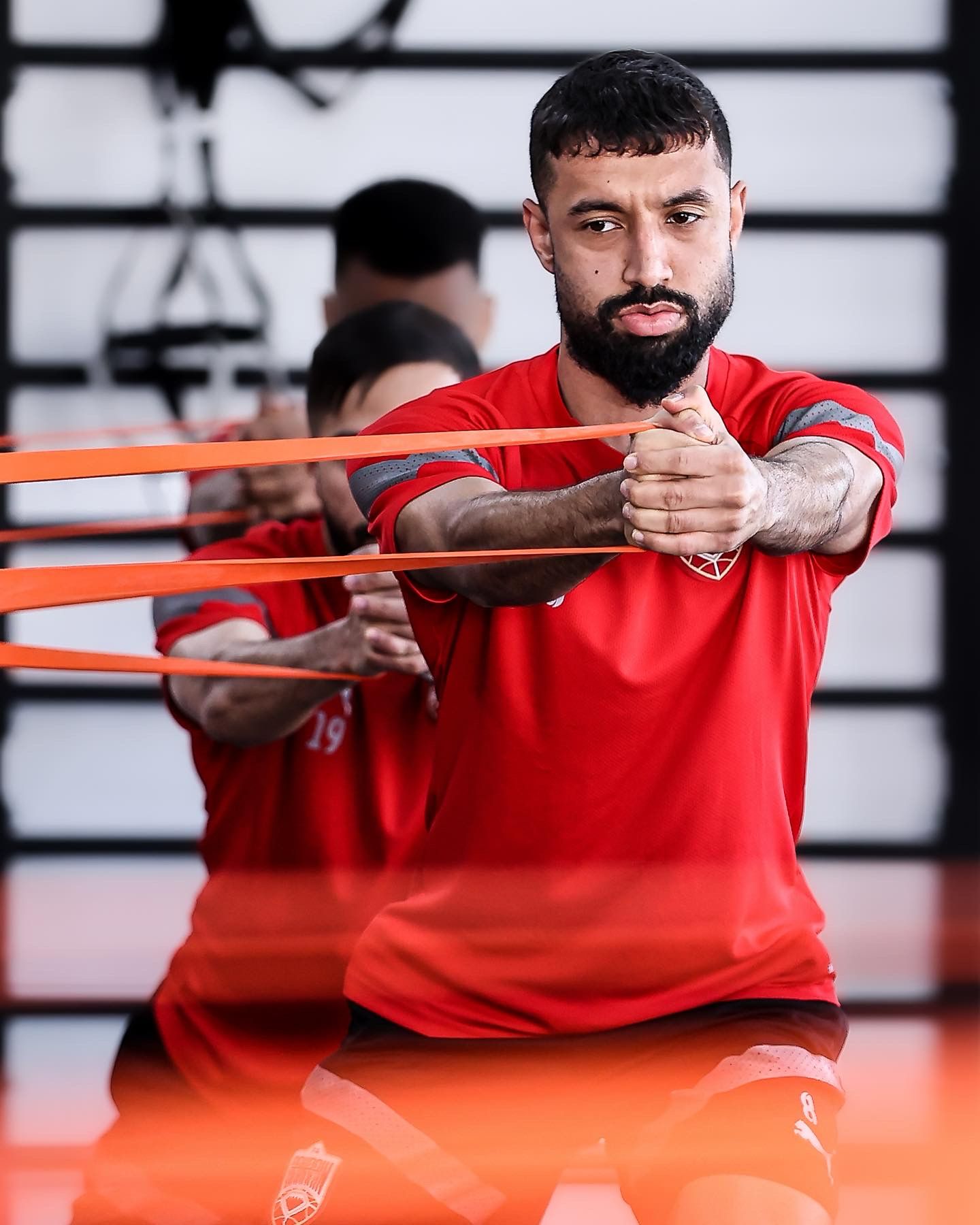 The Bahrainis continued their training programme yesterday in the UAE with work both in the gym and on the pitch.