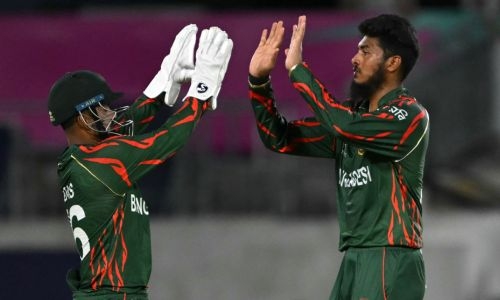 Sri Lanka skipper Wanindu Hasaranga was the next victim of Rishad’s spin, edging a sharply turning delivery to Soumya Sarkar at slip.