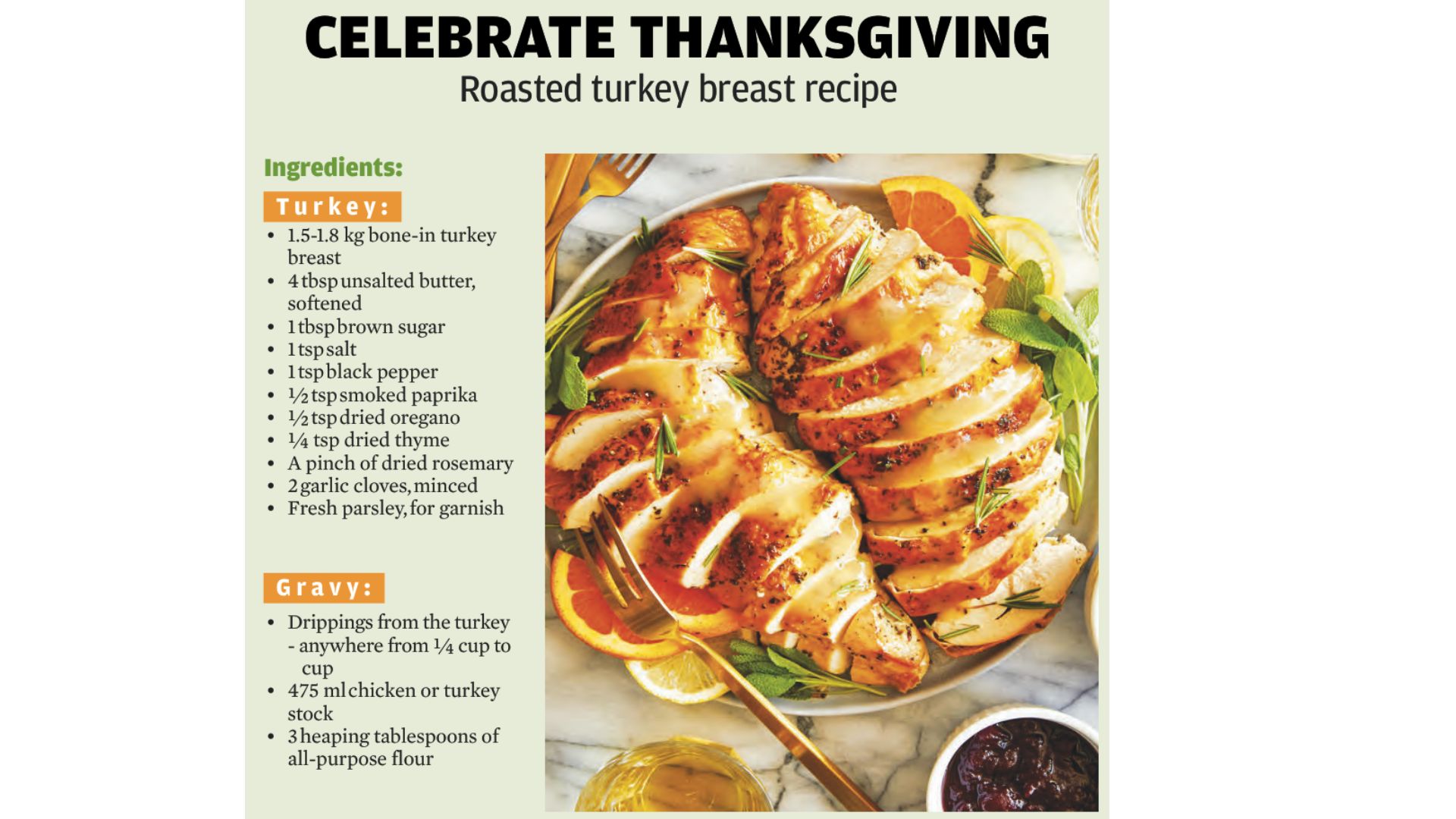 Give thanks this year with Roasted Turkey and Gravy. Say goodbye to dry and boring turkey breasts. In turn, make this juicy and appetising turkey breast recipe and roast the legs separately. The trick to cooking poultry lies in knowing that legs and breasts cook to their ideal doneness at different timings. The gravy will add more flavour and moistness to the dish.