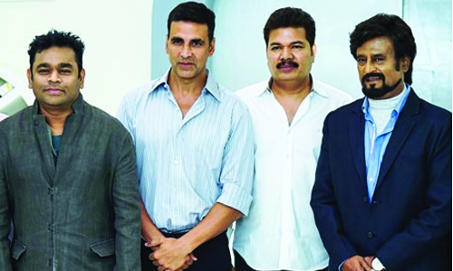 He also shared a picture in which he posed with Rajinikanth, the film's director Shankar and music composer A R Rahman.