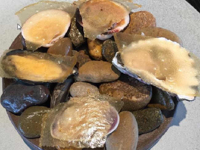 Dishes at the first lunch of the 10-week $485 per head pop-up included crab mixed with egg yolk and cured in fermented kangaroo and “crocodile rocks”, a dish of “assorted shells topped with chicken and crocodile fat shards”.