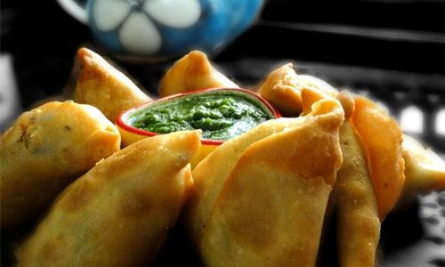 Samosa, or samboosa as known in several Gulf Arab countries, is a fried or baked dish with a savoury filling, such as spiced potatoes, onions, peas, lentils, macaroni, noodles, and/or minced meat (lamb, beef or chicken). The pasty triangles are quite famous on iftar tables across the Middle East and South East Asia.
