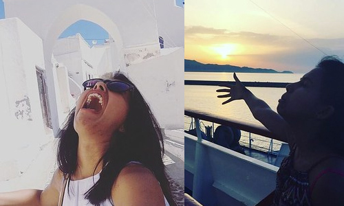 At one point, she dropped her phone in the Aegean Sea, so the photos became about the ~two~ things she missed the most.