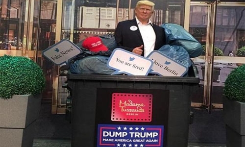 The wax work museum Madame Tussauds in Berlin loaded its effigy of TV star-turned Republican president Donald Trump into a dumpster yesterday, a move apparently intended to reflect its expectations of next Tuesday’s presidential election.