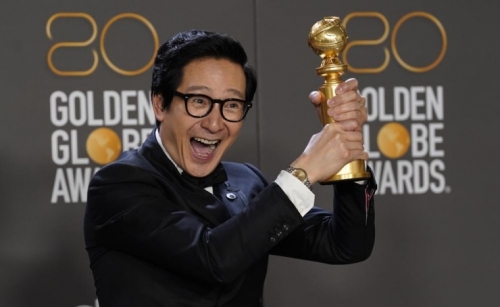 On a soggy night following punishing, prolonged rains that have lashed Southern California, the first award went to Ke Huy Quan, the former child star of "Indiana Jones and the Temple of Doom," for best supporting actor in "Everything Everywhere All at Once."