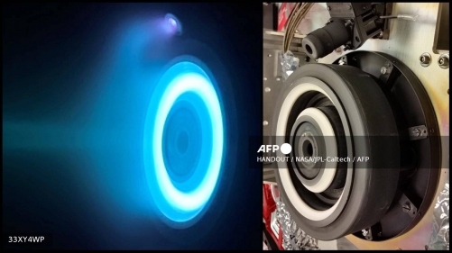 The thrust it exerts is roughly equal to the weight of an AA battery in your hand. But in the void of space, the spacecraft will accelerate continuously to tens of thousands of miles per hour.