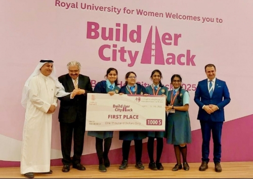 New Millennium School Bahrain celebrated a major achievement as a team of its senior students secured first place at the prestigious ‘Build Her City Hack 2025’ inter-school hackathon for girl students.