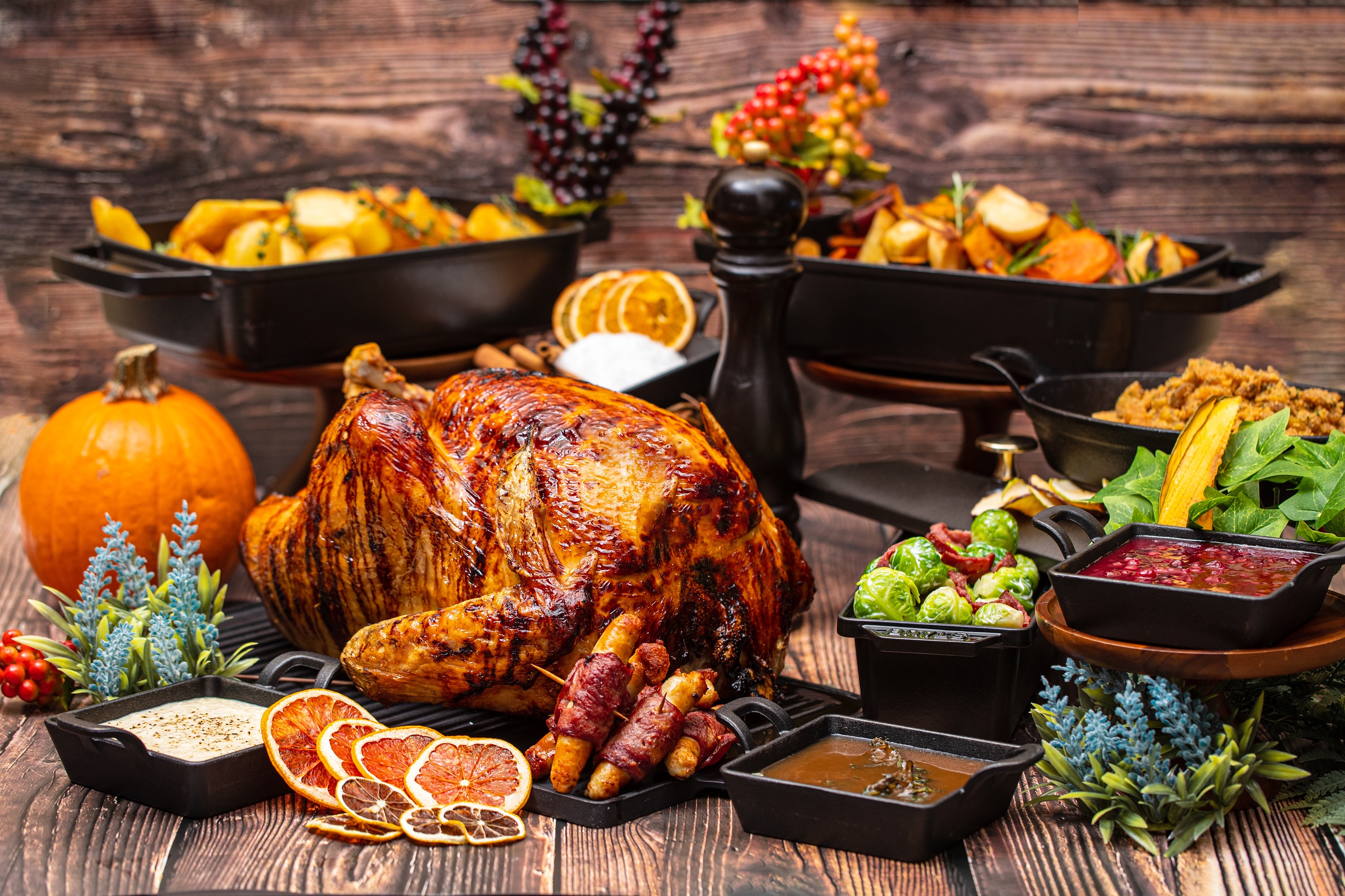 Enjoy a hassle-free celebration throughout the festive season, as they prepare and provide you with the star of the night- A succulent whole turkey, brussels sprouts, winter root vegetables, mashed potato, chestnut stuffing, beef bacon wrapped chicken sausage, turkey jus, bread and homemade cranberry sauce.
