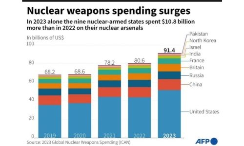 Nuclear arms spending soars as global tensions swell: studies