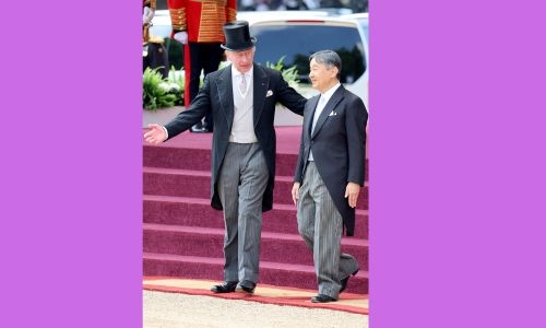 Japan’s Emperor Naruhito and Empress Masako received a guard of honour and royal welcome from King Charles III in London yesterday at the start of a three-day state visit to the UK.