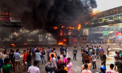 "The protesters torched many police booths... Many government offices were torched and vandalised."