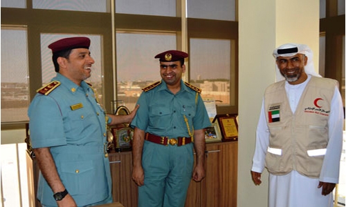 Lt. Colonel Salah Abdullah Al Hemairi, Chief of the Highways Section in Al Ain received Al Mozahmi, who was accompanied by delegates from the Al Ain Centre for Care and Rehabilitation and the Red Crescent. He explained that Abu Dhabi Police have granted his wish to join the Traffic and Patrols Directorate for a day and gave him a military uniform to wear while being taken on a tour at the Traffic Patrol.