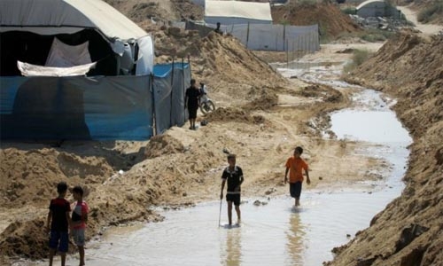 Caption : Palestinians inspect the damage after Egyptian forces flooded smuggling tunnels dug beneath the Gaza-Egypt (afp)