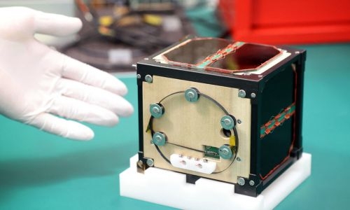 Each side of the box-like experimental satellite, named LignoSat, measures just 10 centimetres (four inches).